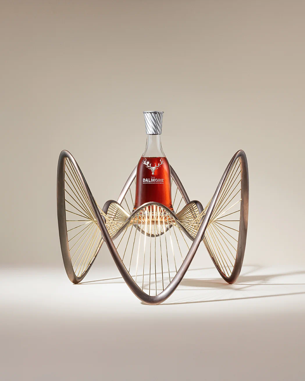 大摩攜手建築設計大師 Ben Dobbin,其建築事務所Foster + Partners 以其操刀 Apple Park 蘋果園區、英國知名地標聖瑪莉艾克斯 30 號大樓聞名,共同跨界打造僅三瓶的「大摩築光大師系列 No.3 珍稀52年單一麥芽威士忌」。珍稀52年版本以Ben Dobbin專為此系列設計的青銅雕塑座呈現,以建築張力美學展現威士忌釀造藝術中的平衡、張力與元素交融意涵。全球僅有 2 套雕塑座。珍稀52年版本在美國白橡木前波本酒桶中陳釀,最後以無與倫比的手工精選酒桶組合完成——Calvados vintage 1980、1940 Colheita port pipe波特酒桶、茶色波特酒桶、40 年的Pedro Ximénez雪莉酒桶,最後於Mont Redon 紅酒桶勾兌而成。